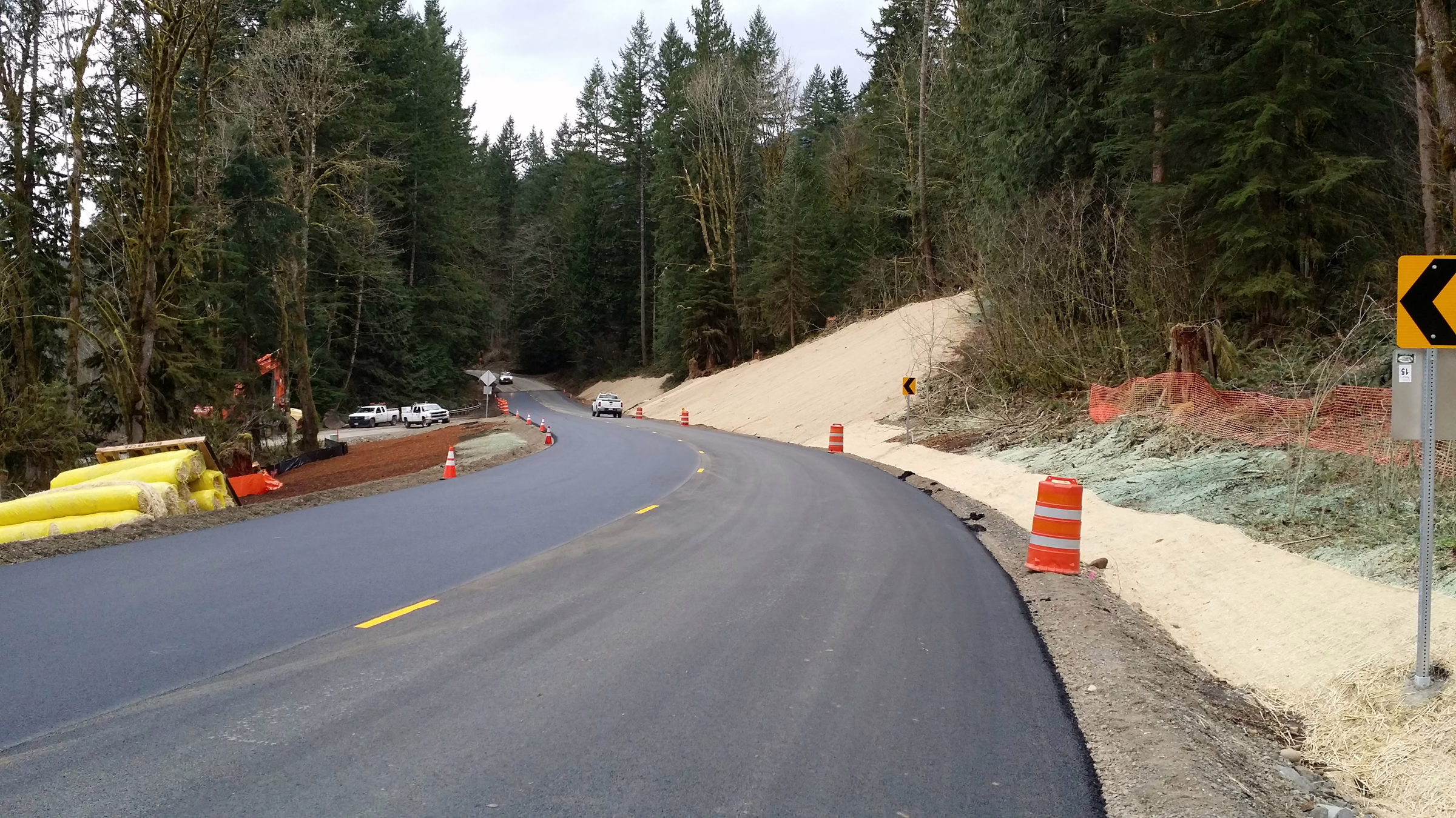 WSDOT contracted RAM to realign SR 542 near Glacier, WA, after heavy rainfall eroded the embankment, prompting a state of emergency declaration. During peak season, this highway serves up to 3,000 vehicles daily. Scope included realigning the road 100’ from the river, clearing debris, blasting rock, and paving a new two-lane section all while keeping the highway open to traffic.